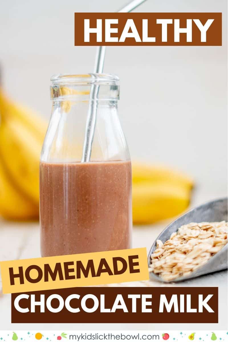 Who knows, the two things are probably one and the same. With the oats and fruit, this homemade chocolate milk is probably more of a smoothie. But my kids like to call it chocolate milk, so we will run with that!