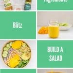 I have found that choosing a kid-friendly salad dressing can really encourage kids to try salad. The Mango Salad Dressing I used on this salad is super simple, 4 ingredients, (5 if you count seasoning) that you just blitz together
